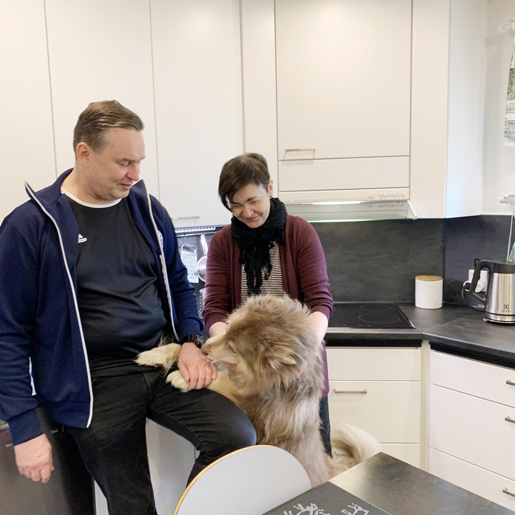 ”Olemme tehneet koko talon remontin vuonna 2016, lukuun ottamatta keittiötä. Jäi harmittamaan silloin, että ei tehty keittiöremonttia niin oltaisiin saatu samoja sävyjä. Tiesimme, että olette tehneet remonttia naapureillemme ja he ovat mainostaneet ja kiitellyt yritystänne mm. luotettavuudesta, ripeästä, napakasta toiminnasta ja ystävällisestä asiakaspalvelusta. Kaverilta myös tuli toinen positiivinen kommentti ja joulun tienoilla otimme yhteyttä teihin. Simo tuli nopeasti kartoittamaan kohteen, jossa luotiin yhteinen näkemys tulevasta remontista. Tulimme navetalle valitsemaan materiaaleja ja samalla sovimme remontin yksityiskohdat. Saamamme tarjous oli selkä ja helppolukuinen. Puhuimme aikataulusta ja Simo arvioi työn kestoksi kolme päivää, mutta se toteutuikin jo kahdessa päivässä. Työmaalla lattia suojattiin hyvin ja remonttikohde pidettiin siistinä. Kaikki meni hyvin ja aikataulu piti ja homma toimi. Simo myös tiedotti remontin kulusta. Vuosien kokemus näkyi remontin sujuvuudessa ja työn jäljessä. Koko remontin ajan koimme, että olemme asiakkaina teille tärkeitä.”